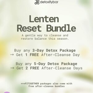 Super Sale EXTRAπΏ Lenten Reset Bundle πΏ Take this season to refresh, cleanse, and reset your body β¨ π Promo Rates: SOLO βοΈ β±2,370 β 3 Days + 1 Day FREE After-Cleanse βοΈ β±3,950 β 5 Days + 2 Days FREE After-Cleanse FIT2GETHER π―ββοΈ βοΈ β±4,475 β 2 Sets (3 Days) + 2 FREE After-Cleanse (1 per set) βοΈ β±7,375 β 2 Sets (5 Days) + 4 FREE After-Cleanse (2 per set) π Note: Ala carte bundles do not include organic teas (sold separately π΅) π Delivery Period: March 27 β April 15 Reset your body, feel lighter, and nourish yourself this Lenten season π«Price range: ₱2,362.00 through ₱7,375.00Price range: ₱2,362.00 through ₱7,375.00
